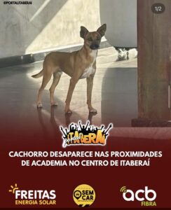 CACHORRO DESAPARECE NAS PROXIMIDADES DE ACADEMIA NO CENTRO DE ITABERAÍ