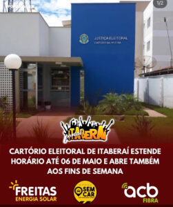 CARTÓRIO ELEITORAL DE ITABERAÍ ESTENDE HORÁRIO ATÉ 06 DE MAIO E ABRE TAMBÉM AOS FINS DE SEMANA
