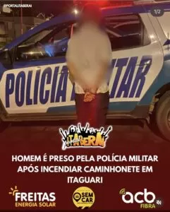 HOMEM É PRESO PELA POLÍCIA MILITAR APÓS INCENDIAR CAMINHONETE EM ITAGUARI