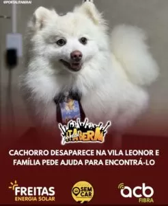 CACHORRO DESAPARECE NA VILA LEONOR E FAMÍLIA PEDE AJUDA PARA ENCONTRÁ-LO