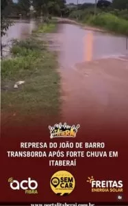 REPRESA DO JOÃO DE BARRO TRANSBORDA APÓS FORTE CHUVA EM ITABERAÍ