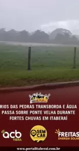 RIOS DAS PEDRAS TRANSBORDA E ÁGUA PASSA SOBRE PONTE VELHA DURANTE FORTES CHUVAS EM ITABERAÍ
