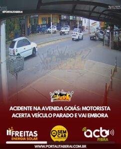 Um motorista colidiu contra um carro que estava estacionado em frente à Casa do Parafuso, na Avenida Goiás, em Itaberaí, e deixou o local sem