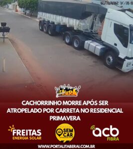 Um triste caso de atropelamento foi registrado na Rua 01, do Residencial Primavera na tarde desta quarta-feira(29), em Itaberaí. Um cachorrinho foi atropelado por uma