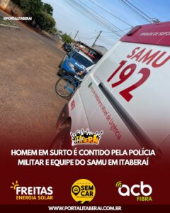Na manhã deste sábado (1º), uma ocorrência de surto psicótico mobilizou equipes da Polícia Militar e do SAMU no Jardim Cabral, em Itaberaí. Segundo informações,