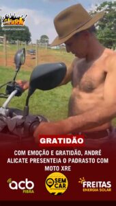 COM EMOÇÃO E GRATIDÃO, ANDRÉ ALICATE PRESENTEIA O PADRASTO COM MOTO XRE