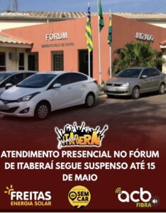 Tribunal de Justiça do Estado de Goiás prorrogou a suspensão do expediente e das atividades presenciais na comarca de Itaberaí até o dia 15 de