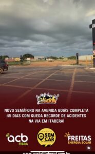 Instalado com o objetivo de melhorar a segurança no trânsito, o novo semáforo da Avenida Goiás, em Itaberaí, completou 45 dias de funcionamento com resultados