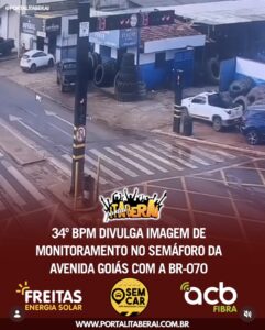 O 34º BPM divulgou nesta quinta-feira (26) imagens do sistema de monitoramento utilizado no semáforo da Avenida Goiás com a BR-070, em Itaberaí. A publicação