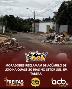 Moradores da Rua S, no Setor Sul, em Itaberaí, estão reclamando do acúmulo de lixo que permanece no local há quase 20 dias sem ser
