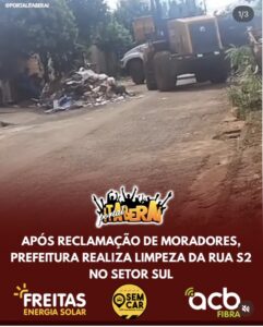 Após reclamações feitas por moradores, a Prefeitura realizou a limpeza da Rua S2, no Setor Sul, em Itaberaí. O local havia se tornado motivo de