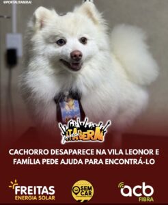 Um cachorro está desaparecido desde as últimas horas na Vila Leonor, em Itaberaí, nas proximidades da Praça Brasil. A família está preocupada e pede a